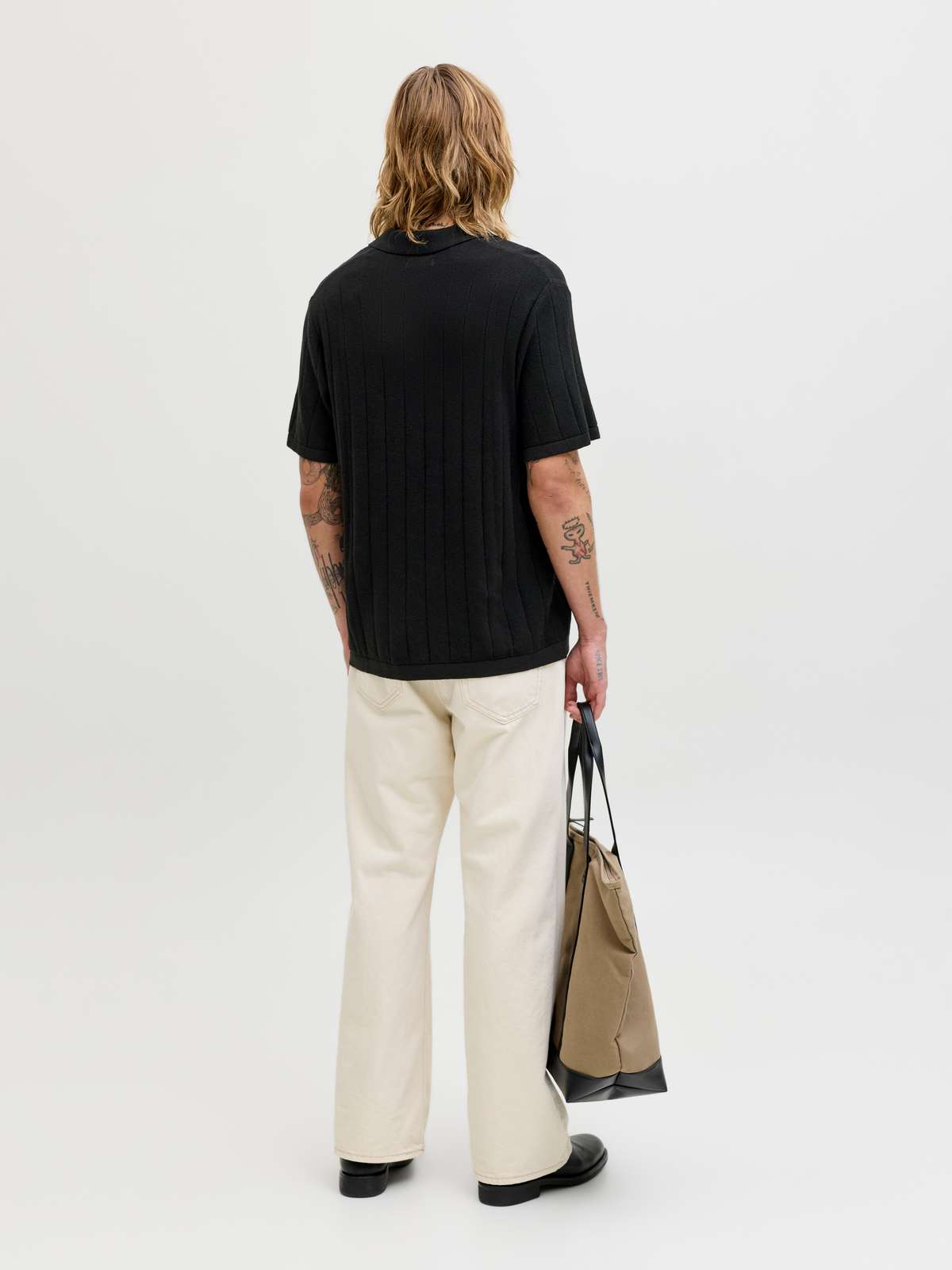 JJEBRADLEY KNIT SPLIT NECK SS SN Black