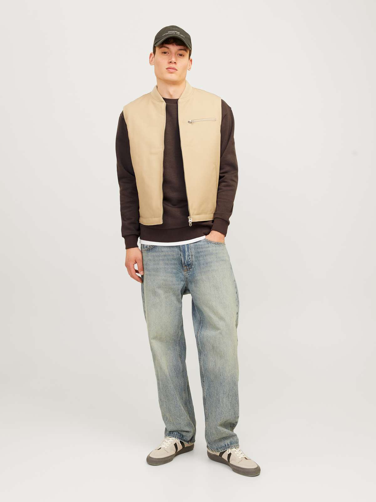 Create a cool everyday outfit or a relaxed weekend look with a basic sweat style.