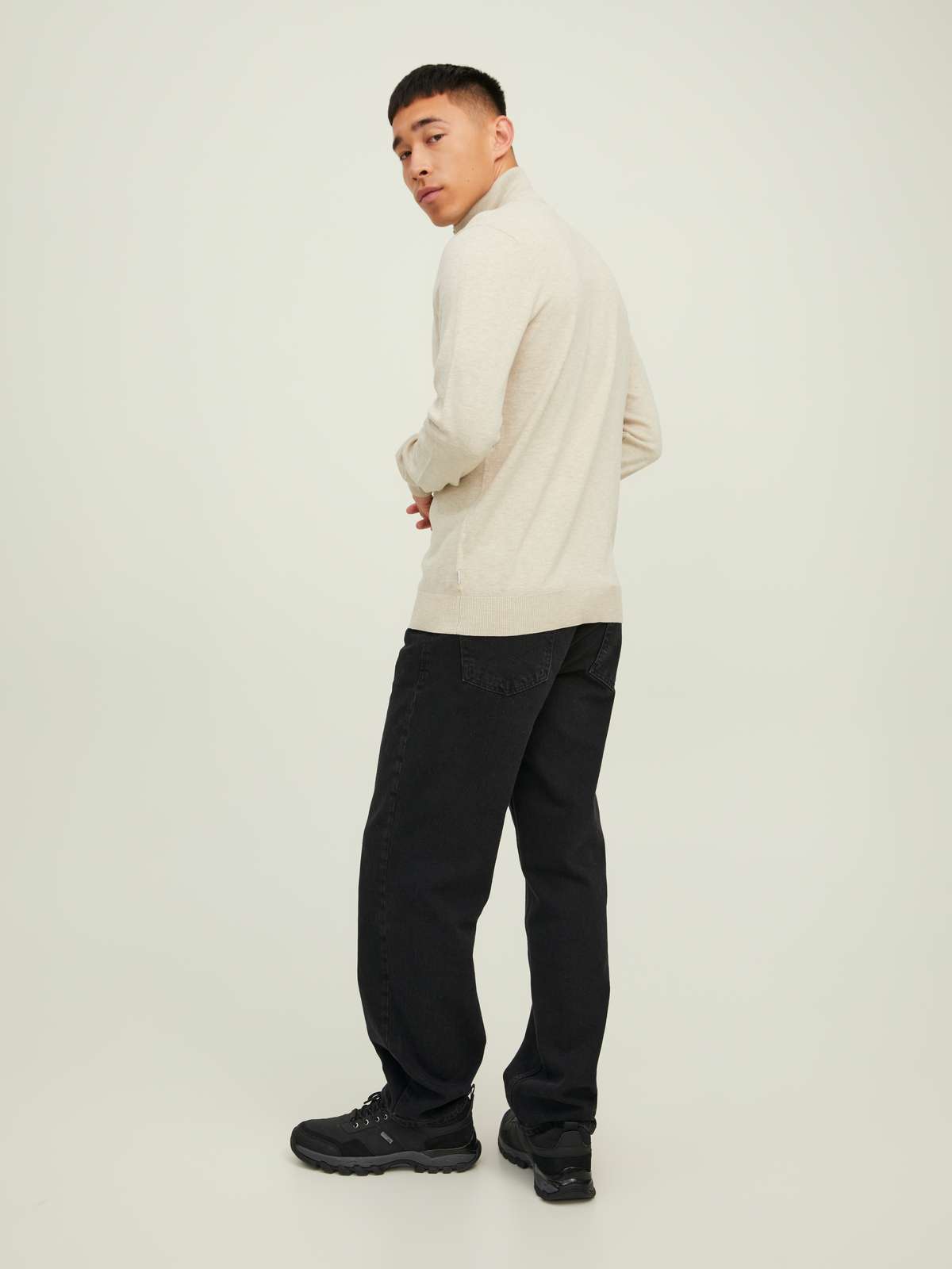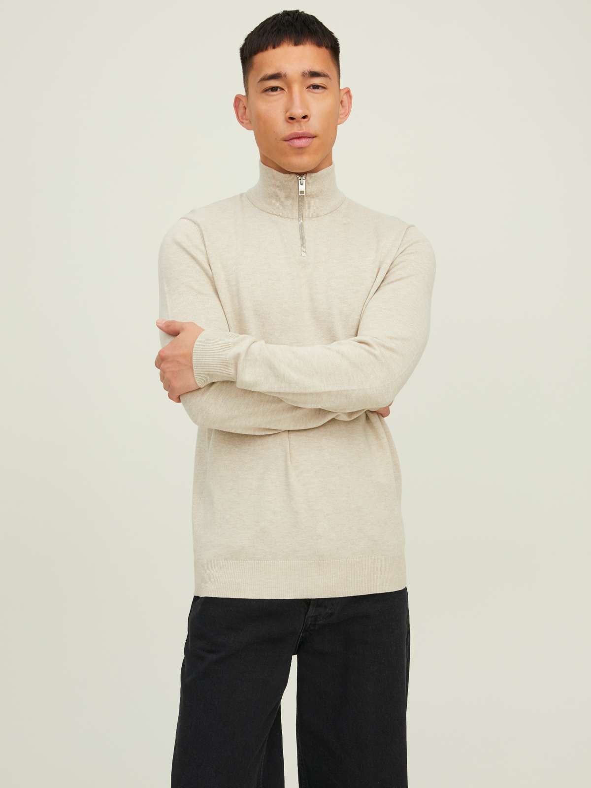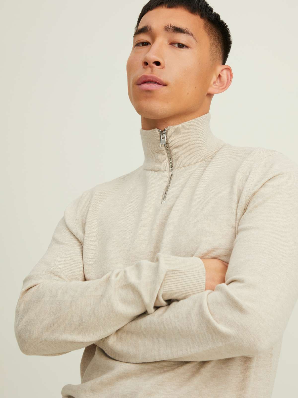 JJEEMIL KNIT HALF ZIP NOOS Oatmeal
