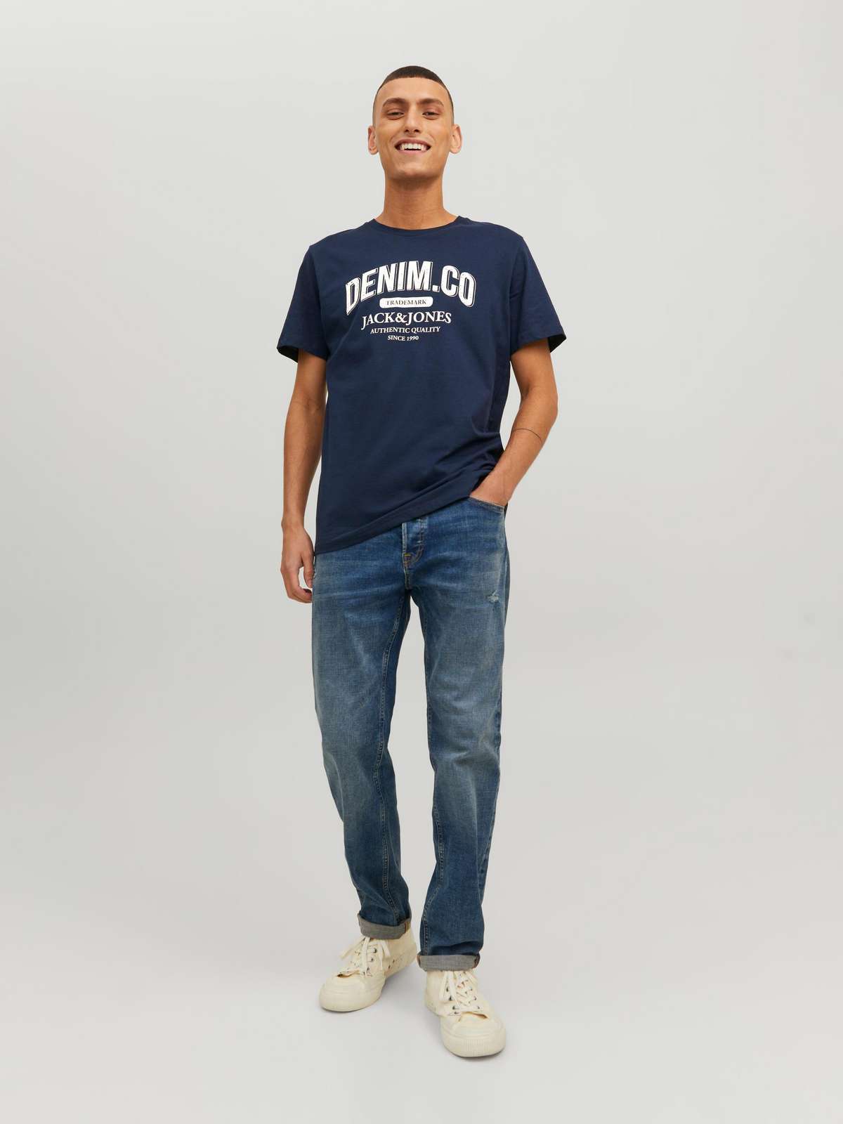 JJEJEANS TEE SS O-NECK NOOS 22/23 Navy Blazer