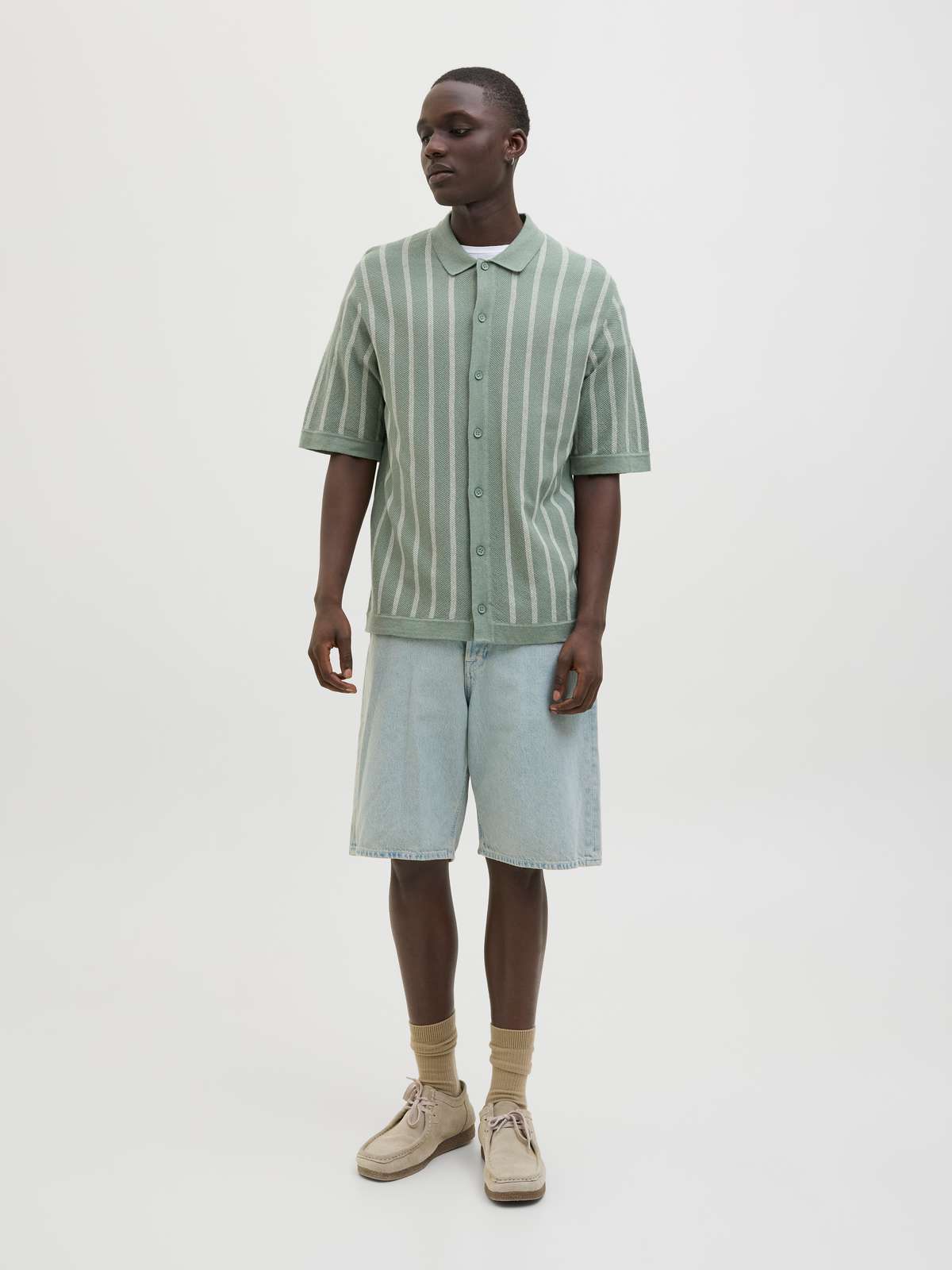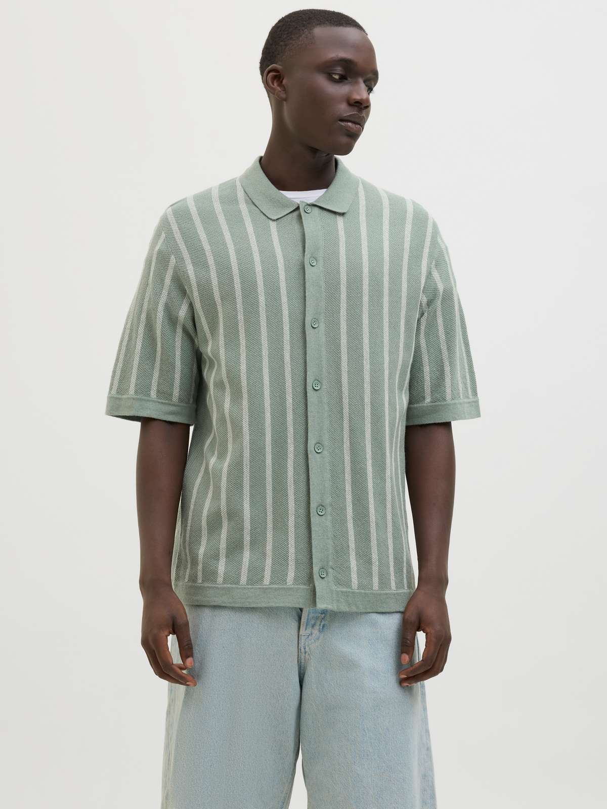 JJEMIL KNIT STRIPED SHIRT SS Iceberg Green