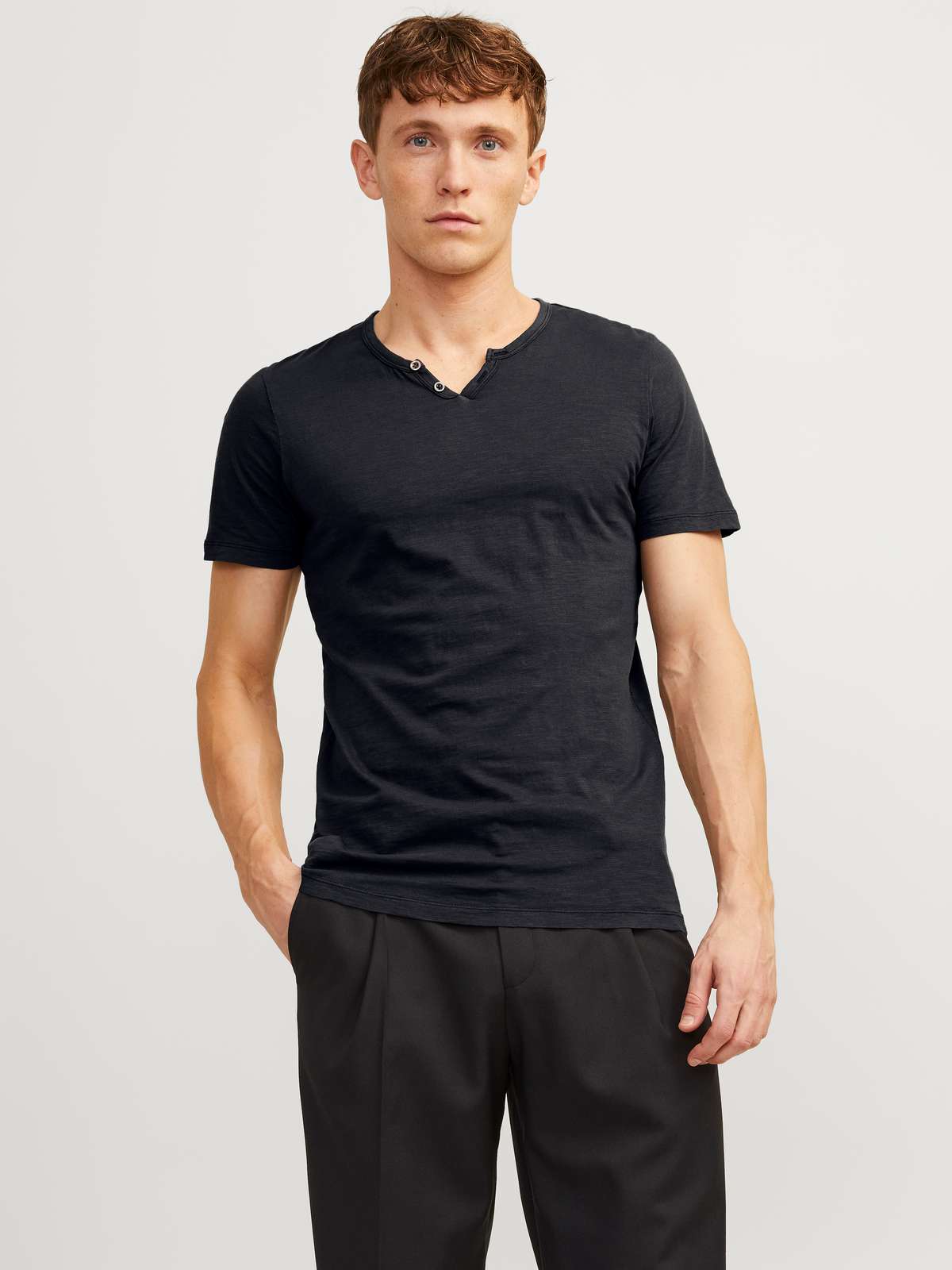 JJESPLIT NECK TEE SS NOOS Black