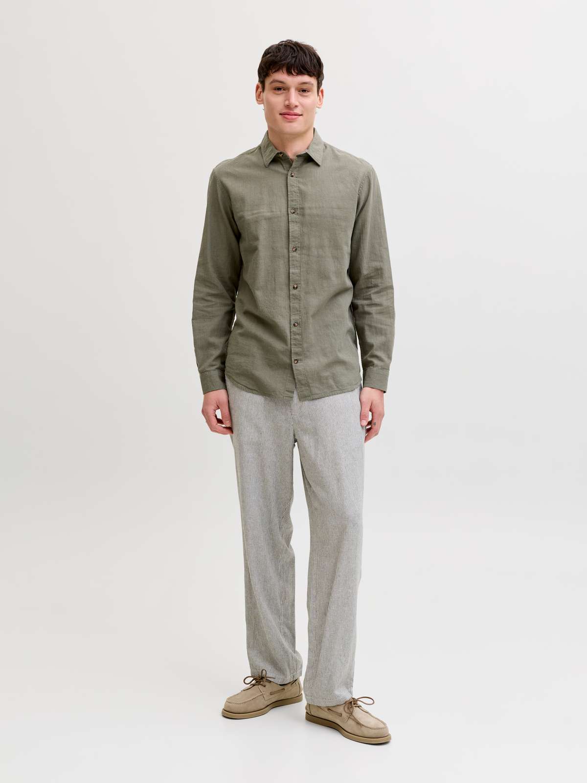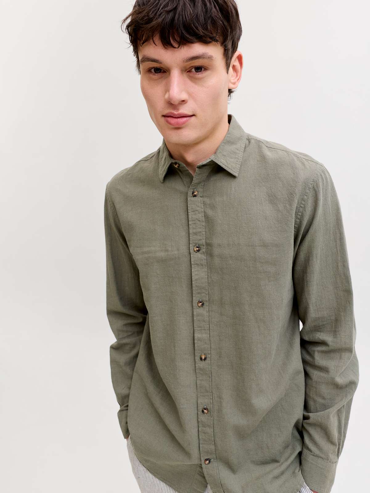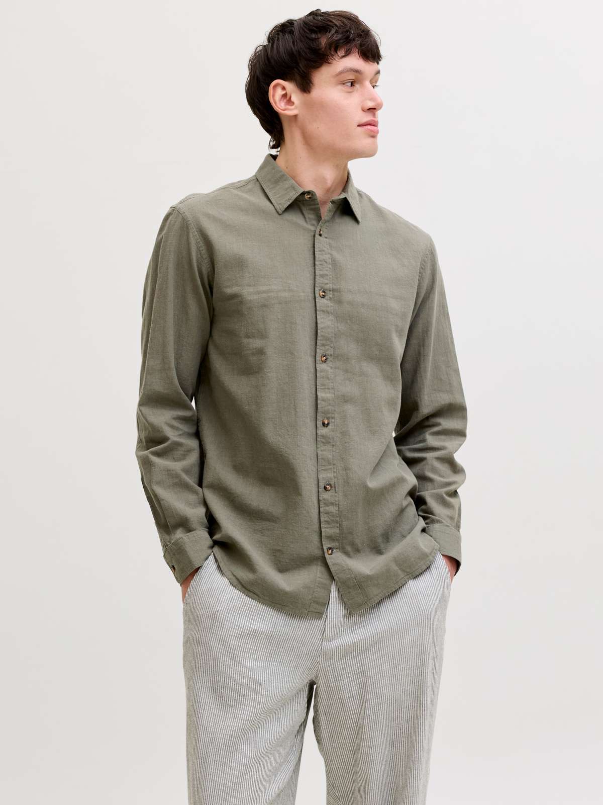 JJESUMMER LINEN BLEND SHIRT L/S SN Dusty Olive