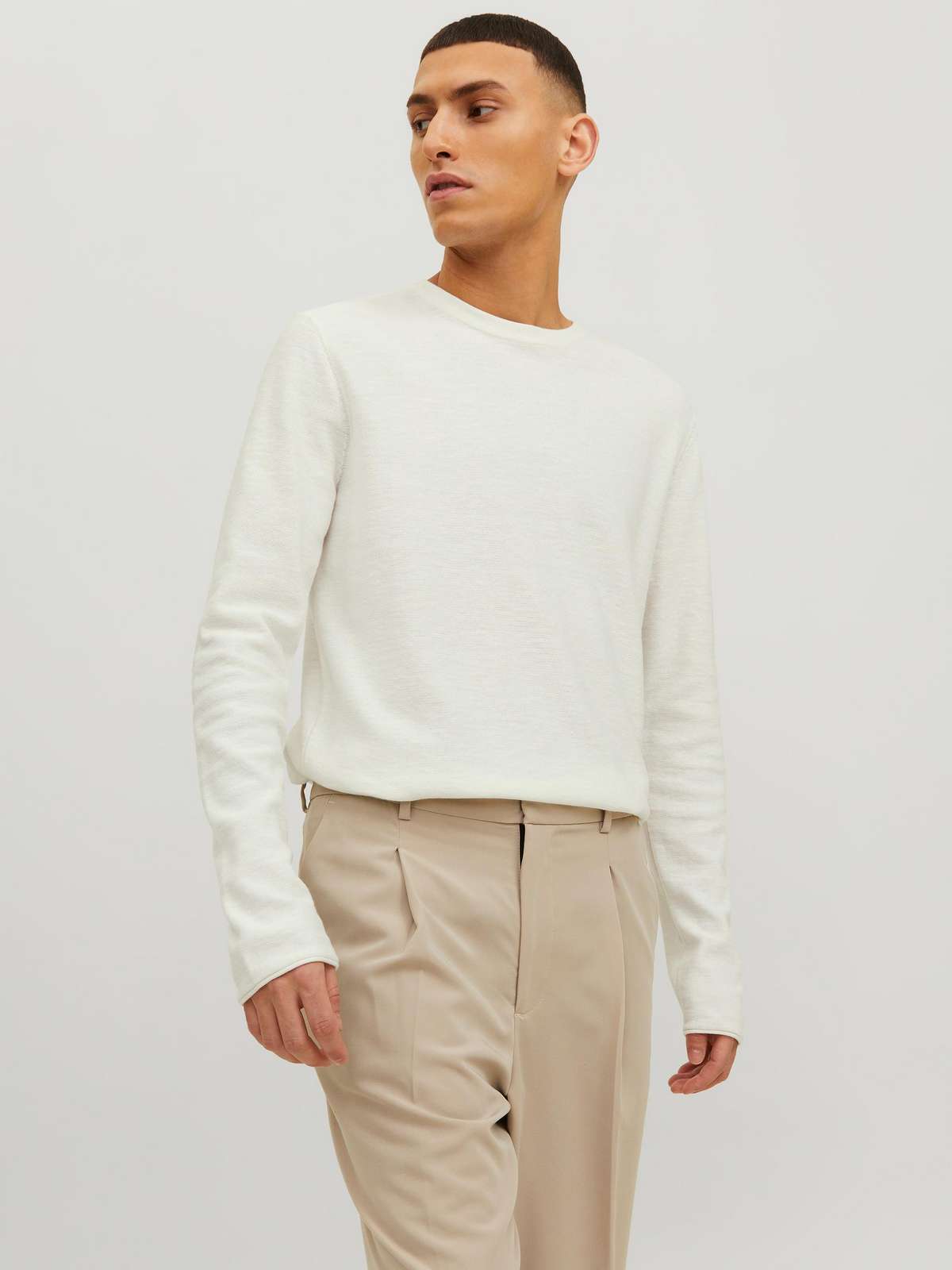 JJESUMMER LINEN KNIT CREW NECK SN Cloud Dancer
