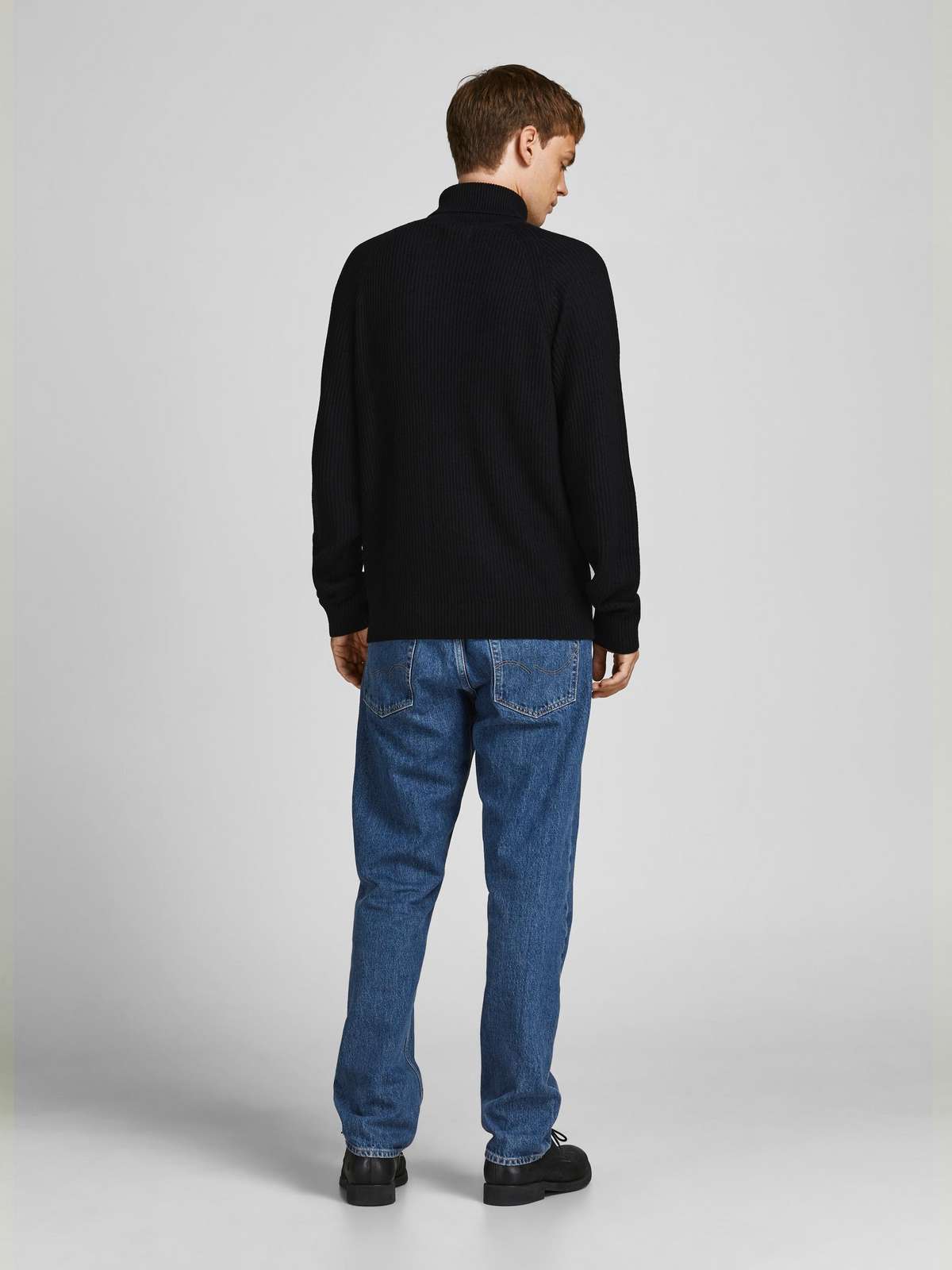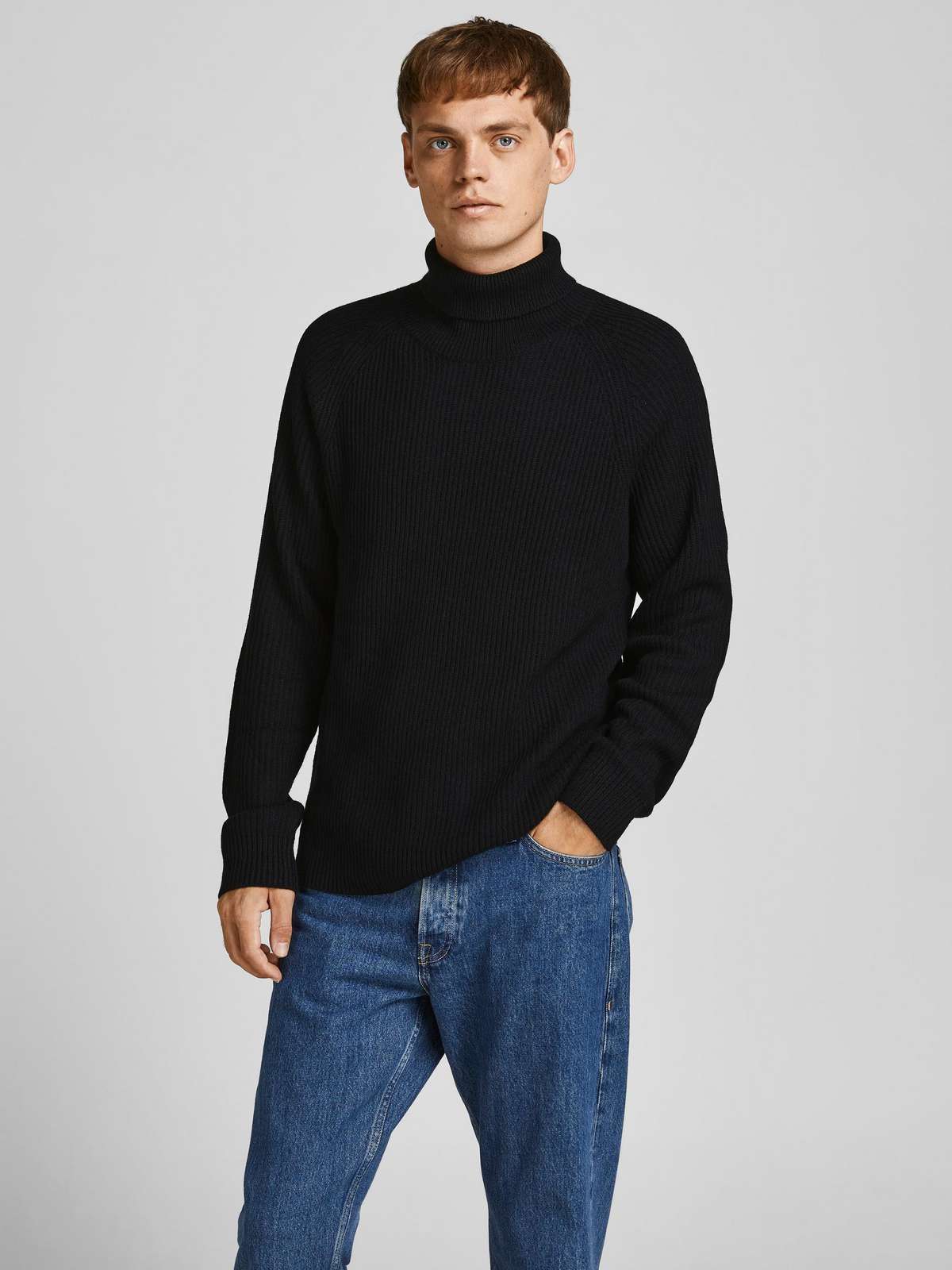 JJPANNEL KNIT ROLL NECK PRE Black