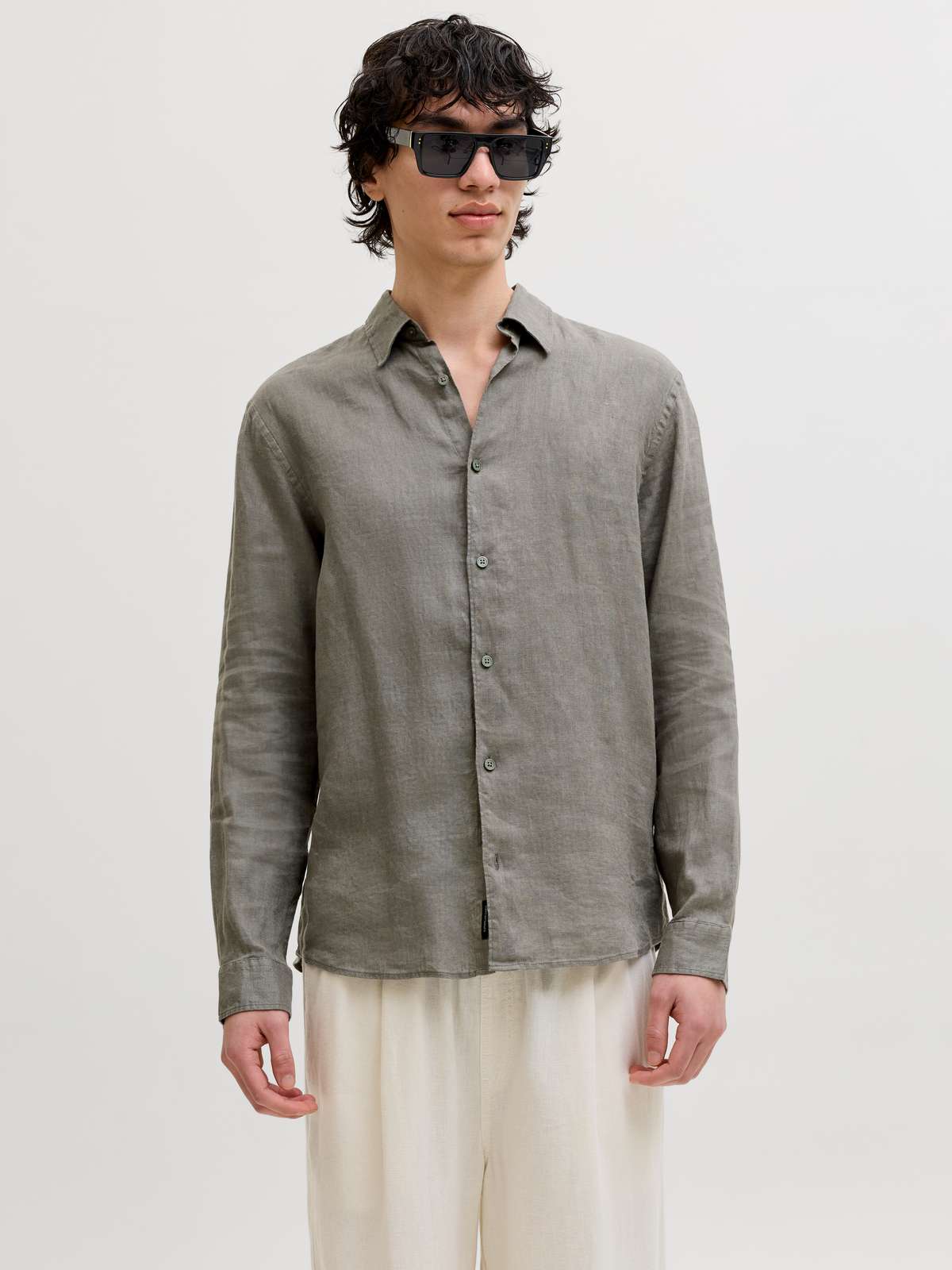 JPRBLALAWRENCE LINEN LS SHIRT SN Smokey Olive