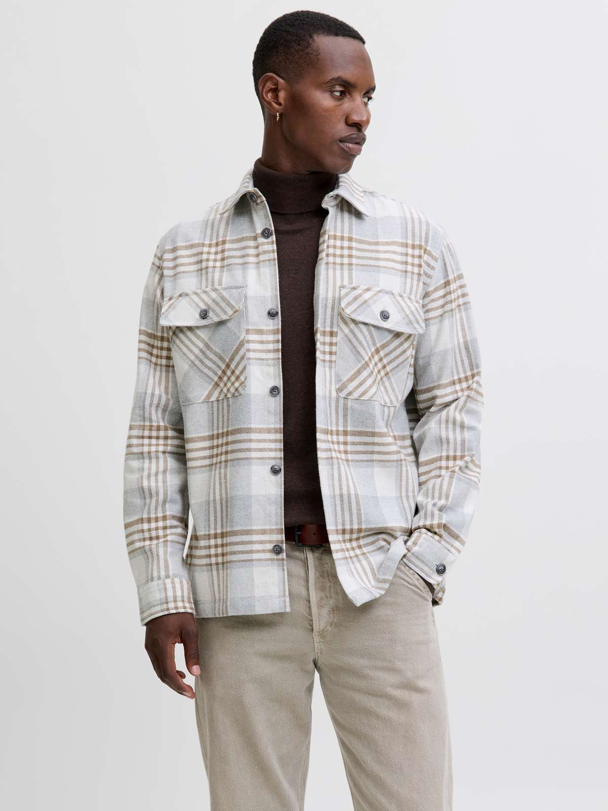 JPRRAYLE MELANGE CHECK L/S OVERSHIRT SN Ermine