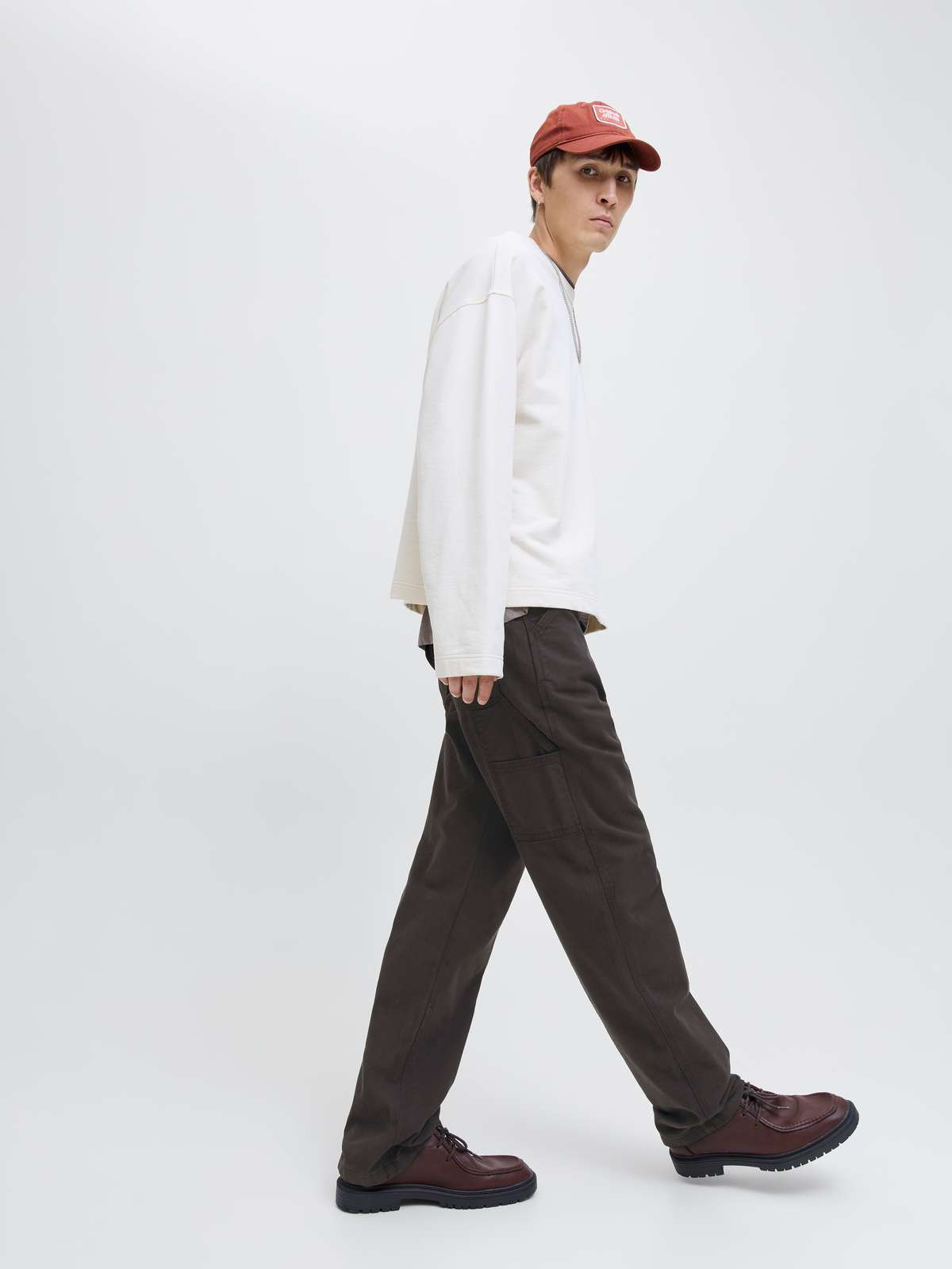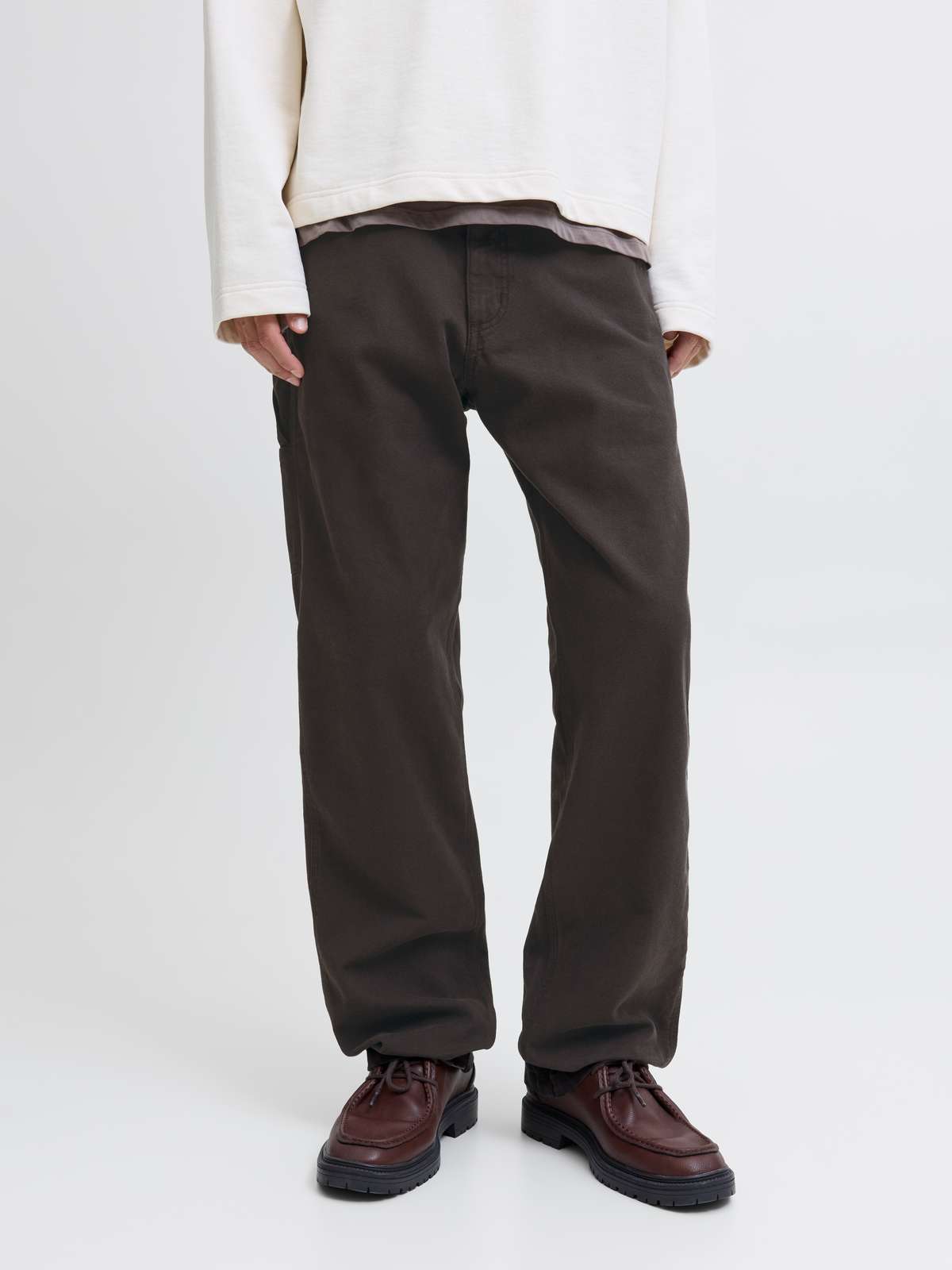 Create a clean, contemporary look with a pair of comfortable trousers and show off the functional details and cool work-like vibe by matching them with a sweatshirt and a pair of trainers or a jacket and a pair of boots.